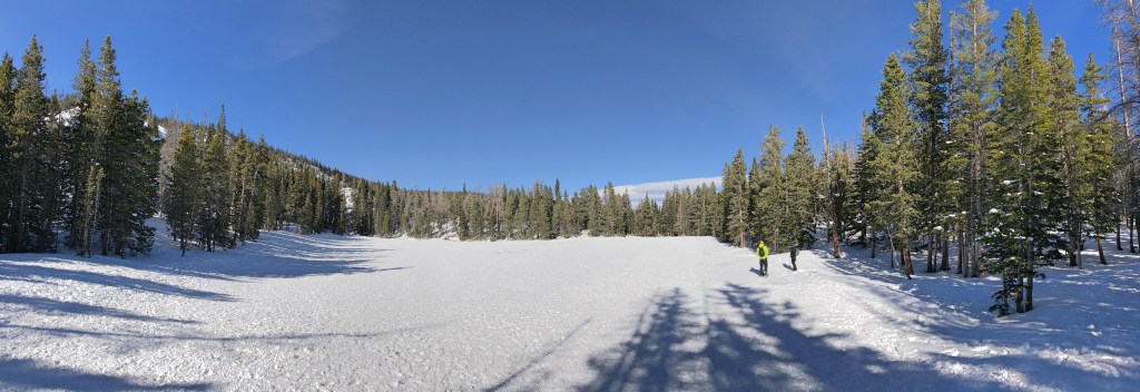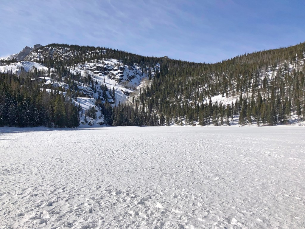 I was most excited about the Rocky Mountains and we spend the entire second day in Rocky. Since there was a heavy snowfall some of the routes were closed. On the way to Rocky, we drove through Lake Estates which was all frozen and with the backdrop of mountains it’s a sight to watch. We went to Glacier George for our first stop, there are a lot of lakes around George. Bear Lake was 15 mins walk from the parking and to our surprise, the lake was all frozen and we could even walk over it. We spent some time wandering around the lake, taking photos and just relishing the beauty of the mountains. Its places like these that reminds how tiny role we play in the whole ecosystem. Nymph lake was another 1 mile from Parking and some of us decided to go there. Nymph Lake view was pretty similar to Bear Lake as the lake was frozen. There are a lot of vistas points in the park, we stopped at some of them in between and then headed to Moraine Park. We drove till the end of Fren Lake Road stopped there for some time and then headed back to Airbnb.