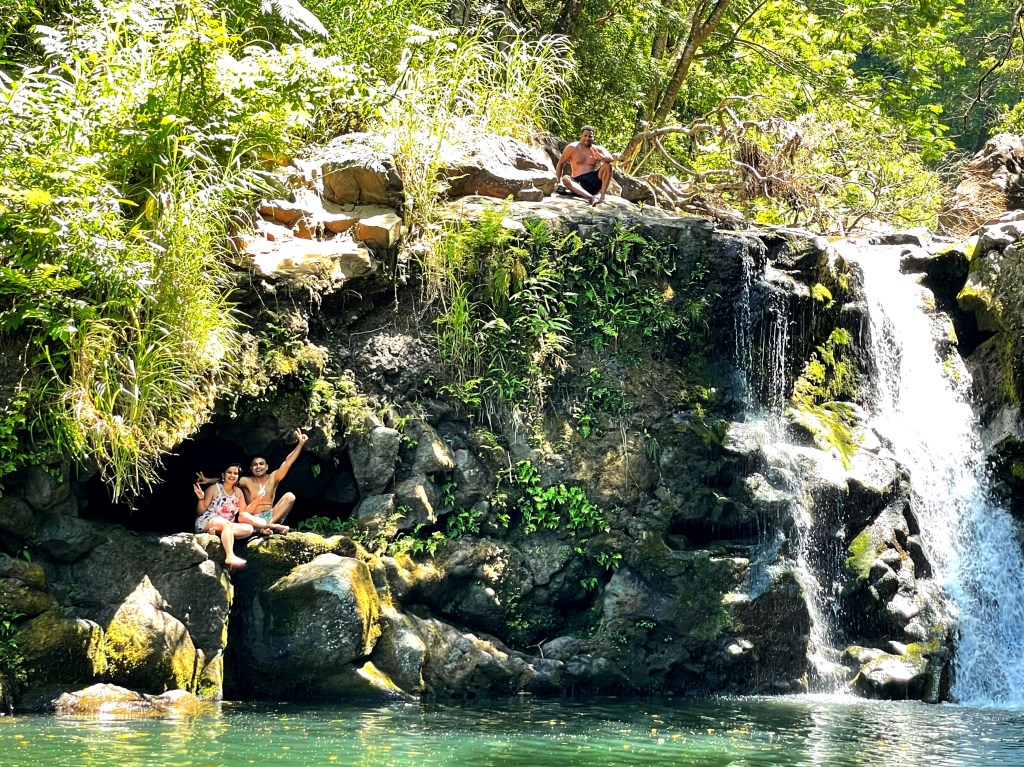 It is the first stop on the Road to Hana that a lot of people take. You can swim in a water waterfall after hiking three miles. It is actually a private property owned by a family that runs a food truck at the entrance. From here, we bought the famous Hawaiian Coconut Candy.